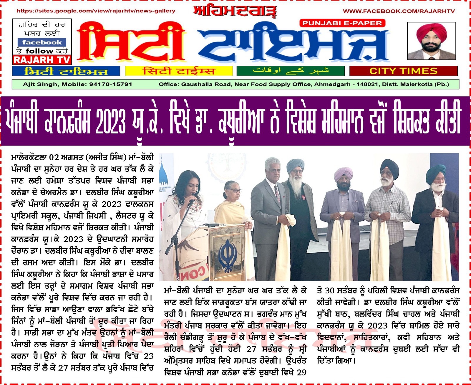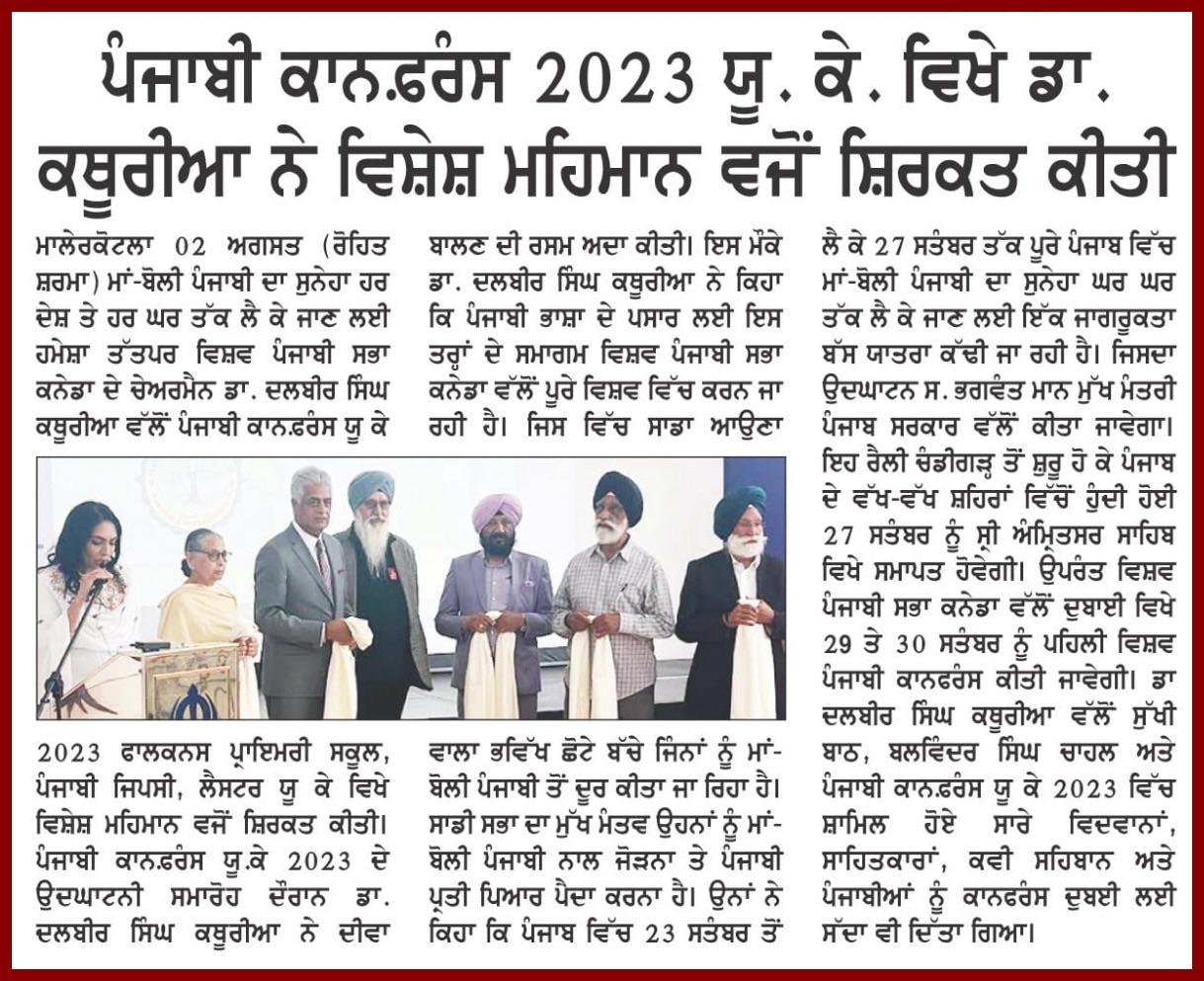 ਬਲਵਿੰਦਰ ਸਿੰਘ ਚਾਹਲ ਤੇ ਕੁਲਵੰਤ ਕੌਰ ਢਿੱਲੋਂ ਪ੍ਰਧਾਨ ਸਾਹਿਤ ਕਲਾ ਕੇਂਦਰ ਸਾਊਥਾਲ ਨੇ ਵਿਚਾਰ ਸਾਂਝੇ ਕਰਦੇ ਕਿਹਾ ਕਿ ਬਰਤਾਨੀਆ ਵਿੱਚ ਪਿਛਲੀ ਅੱਧੀ ਸਦੀ ਤੋਂ ਵੱਧ ਵਿੱਚ ਰਚੇ ਗਏ ਪੰਜਾਬੀ ਸਾਹਿਤ ਦੀ ਨਿਸ਼ਾਨਦੇਹੀ ਕਰਨ ਵਿੱਚ ਪੰਜਾਬੀ ਕਾਨਫਰੰਸ ਯੂਕੇ ਨੇ ਪਿਛਲੇ ਸਾਲ ਅਹਿਮ ਭੂਮਿਕਾ ਨਿਭਾਈ ਤੇ ਇਸ ਸਾਲ ਇਸ ਅਹਿਮ ਵਿਸ਼ੇ ਸੰਬੰਧੀ ਭਰਮੀ ਵਿਚਾਰ ਚਰਚਾ ਕੀਤੀ ਜਾਵੇਗੀ।