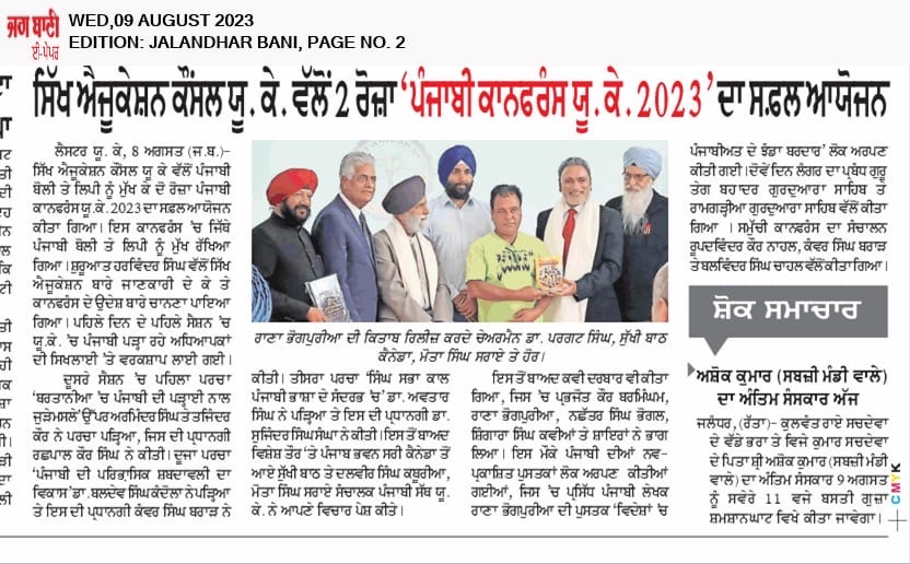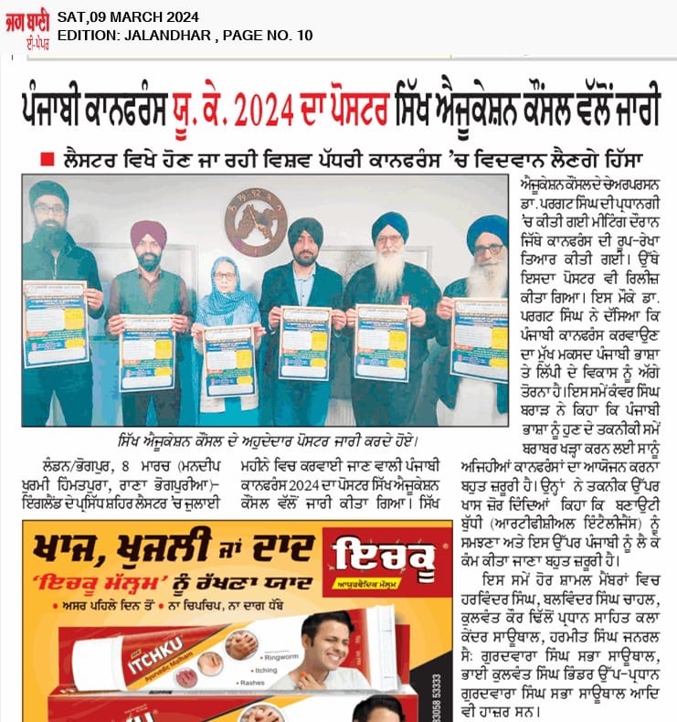 ਸਿੱਖ ਐਜੂਕੇਸ਼ਨ ਕੌਂਸਲ ਵੱਲੋਂ ਪੰਜਾਬੀ ਕਾਨਫਰੰਸ ਯੂਕੇ 2024 ਦਾ ਪੋਸਟਰ ਜਾਰੀ