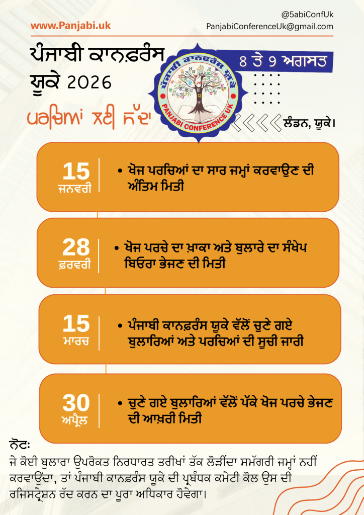 2026 ਦੀ ਪੰਜਾਬੀ ਕਾਨਫਰੰਸ ਯੂਕੇ ਦੇ ਪ੍ਰਸਤਾਵਿਤ ਵਿਸ਼ੇ: